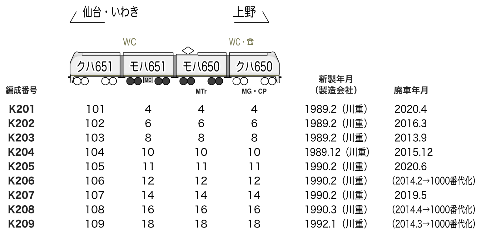 651系の4両編成は9本が投入されましたが、常磐線で最後まで活躍したのはカツK201・K205・K207編成の3本のみです。