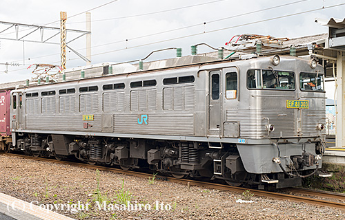ステンレス未塗装の車体が輝いている元関門トンネル専用機 EF81 303