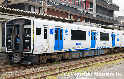 ただ、今回の実証運転はこれまで香椎駅でお昼寝していた“DENCHA”ことBEC819系5300番代を活用したスジです。